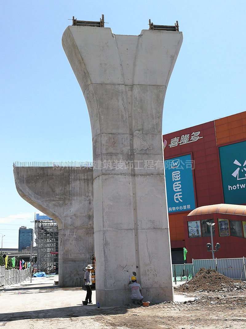 混凝土的缺陷形式很多,比如蜂窩、露筋、麻面等,這些都是小的缺陷,修補(bǔ)及修飾對我公司來說是不成問題,修飾后的混凝土表面基本沒有色差。這些缺陷的修飾需要大量的人工及材料,還需要技術(shù)水平高的工人來操作。我公司專業(yè)修補(bǔ)混凝土的蜂窩、麻面、錯臺、錯模、離析、漏漿、裂縫、露筋、露震、局部破損等混凝土缺陷?;炷列扪a(bǔ)后的效果,盡量保持混凝土原貌,混凝土表面無色差、無明顯修補(bǔ)痕跡與原基底保持基本一致。